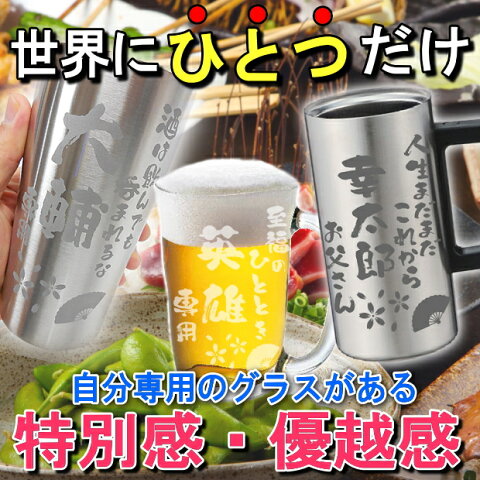 は、 ◆初めてでも簡単に注文できる!◆ お名前以外は、選択式のセミオーダー メッセージなど定形文を 選択してただき、 彫刻するお名前は、 注文画面の備考欄へ記入するだけでOK! 世界にひとつだけのジョッキを たった1個から製作致します! サプライズギフトとして 大変ご好評いただいております。