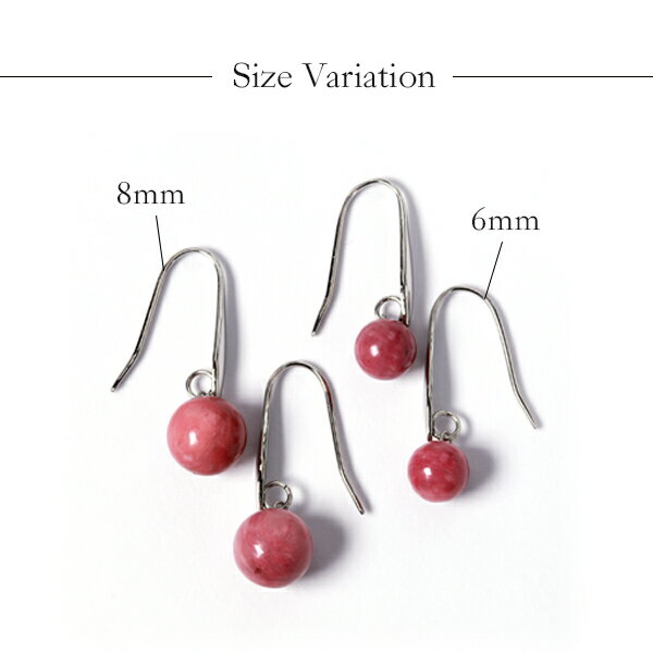 [片耳用] ピアス 金属アレルギー対応 ピアス セカンドピアス ファーストピアス メンズピアス フック ウイングフック 揺れる ロング ステンレス 316L ピアス 天然石 ロードナイト(薔薇輝石) 丸玉 プラチナ ホワイトゴールド 色