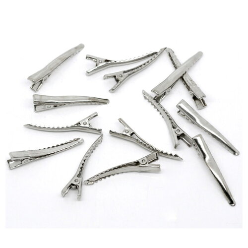 45mm 10個入 ヘアクリップ 合金製 クチバシ型 ヘアクリップ シルバートーン / ダッカール 嘴型 クチバシクリップ 銀色 髪留め 髪飾り ヘアアクセ ヘアピン 銀色 シルバーカラー ハンドメイド【ゆうパケット対応】