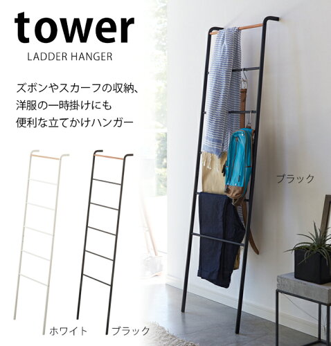 ラダーラック ラダーシェルフ ラダーハンガー タワー 白い 黒 tower 山崎実業 yamazaki 収納 壁面 シンプル アイアン おしゃれ 立て掛け 棚