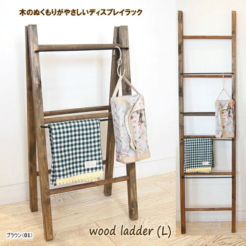 [即出荷][ブラウン] ラダー L ディスプレイラック ラダーラック ラダーシェルフ パーテーションラック 木製 ハンガー アイアン バー 壁掛け 壁面棚 ディスプレイ ナチュラル ブラウン 40421 【ネコポス便不可】【あす楽対応】