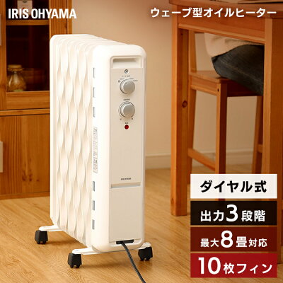 オイルヒーター アイリスオーヤマホワイトオイルヒーター ヒーター 速暖房 乾燥対策 メカ式 ウェーブ型 木造6畳/コンクリート8畳 こども ダイヤル式 キャスター付 ストーブ オイル 取っ手付 エコ コンパクト