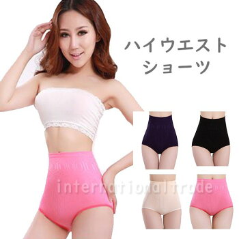レディース下着 ハイウエストショーツ ハイウエストパンツ 深め かわいい 無地 シンプル 深履き 伸縮 優しい フリーサイズ デイリーショーツ 冷え予防 お腹 お尻 ヒップ ベージュ ピンク パープル ブラック